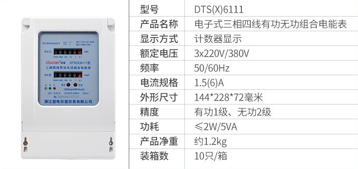 DTS(X)6111、DSS(X)6111型三相電子式有功無功組合電能表(以下簡稱電能表),是為了適應電網改造設計開發(fā)的有功、無功組合式電能表。它具有較高的準確度和可行性。本產品制造標準符合GB/T17215.321-2008《1級和2級靜止式交流有功電能表》、GB/T17215.323-2008、DL/T614-1997《多功能電能表》、DL/T645-1997《多功能電能表通信規(guī)約》等電力行業(yè)標準對三相靜止式電能表全部技術要求,是對需要進行無功電量考核的企業(yè)、變電站或電廠理想的選擇,亦適合輸配電或配網自動化用表。本產品可供計量參比頻率為50Hz電網中的三相交流有功和無功電能,并能進行正、反向電能計量和紅外及RS485通訊功能。其特點是精度高、可靠性好、寬負荷、低功耗、誤差曲線平直、抗干擾能力強。